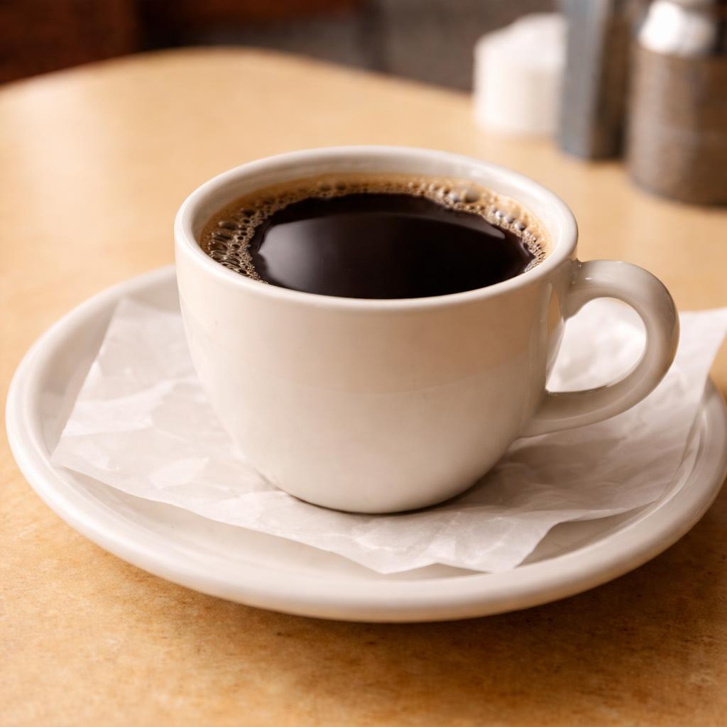 Strong diner coffee, bottomless refills. Brewed hot and served in a heavy ceramic mug like it should be.